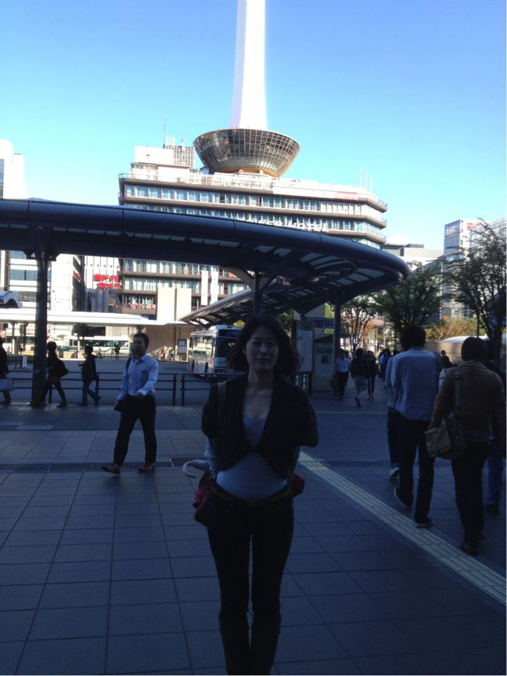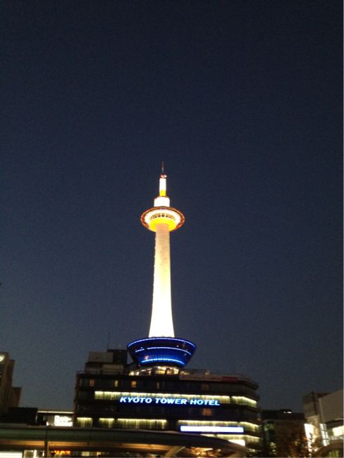 朝は頭まで撮れなかったタワーも綺麗にライトアップ。