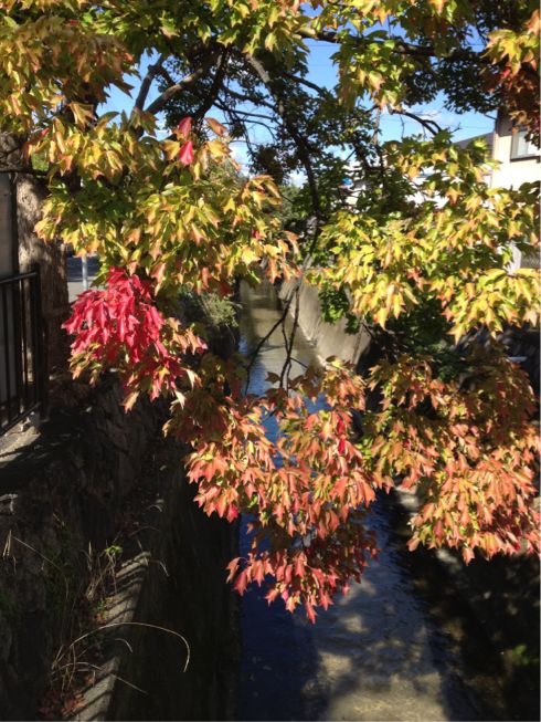 一乗寺の素敵な本屋さん、恵文社にむかう途中の小道には少し色づきはじめた街路樹が。