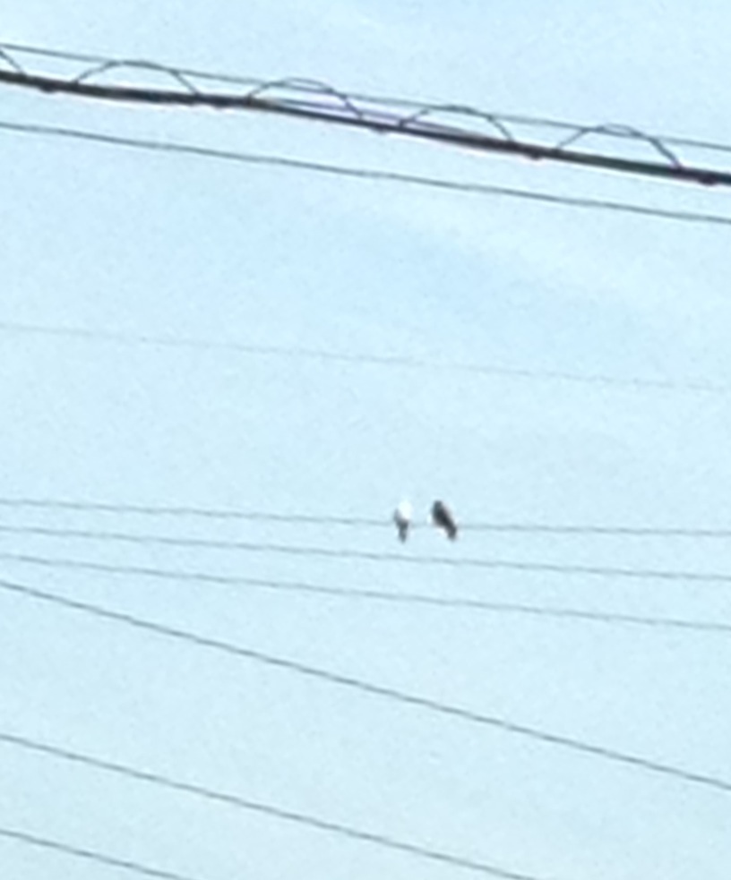 昨日、見かけた電柱の鳩は、白と黒のペア。