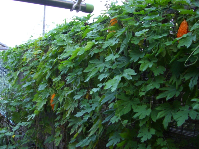 身が焦げてしまうんじゃないかと思うような暑い日には 一層いきいきとしてみえる。 窓越しの深い緑色のゴーヤカーテンは ほんのすこし暑さをやわらげ・・・ いや。 暑い夏も楽しませてくれた。