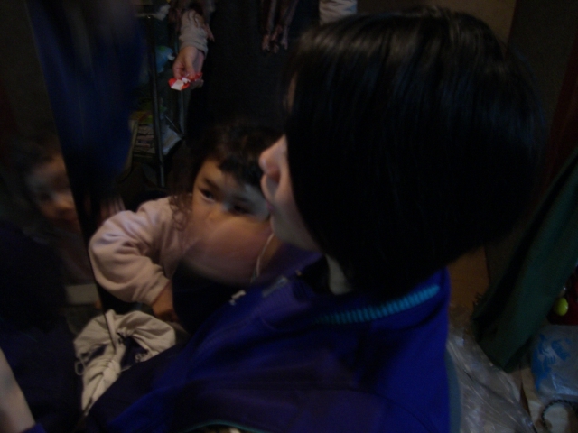 なんとか少しづつ前進するも、台所と隣の部屋との境界で 鴨居の低さと 敷居の段差に泣かされ立ち往生。