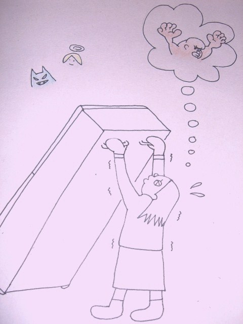 頭だけ突っ込んでみたものの、背後の家具と冷蔵庫にはさまれ 冷蔵庫を傾けることも立ち上げることも出来ない体制に。