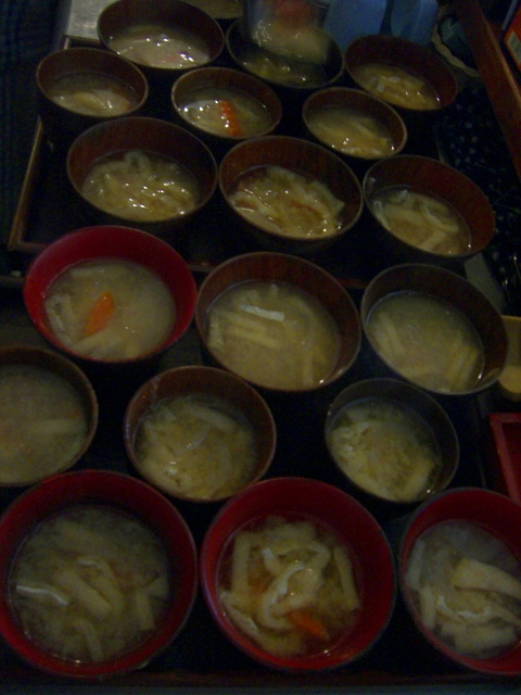 ずらりと並んだお味噌汁。さぁ、ごはんだぁ!