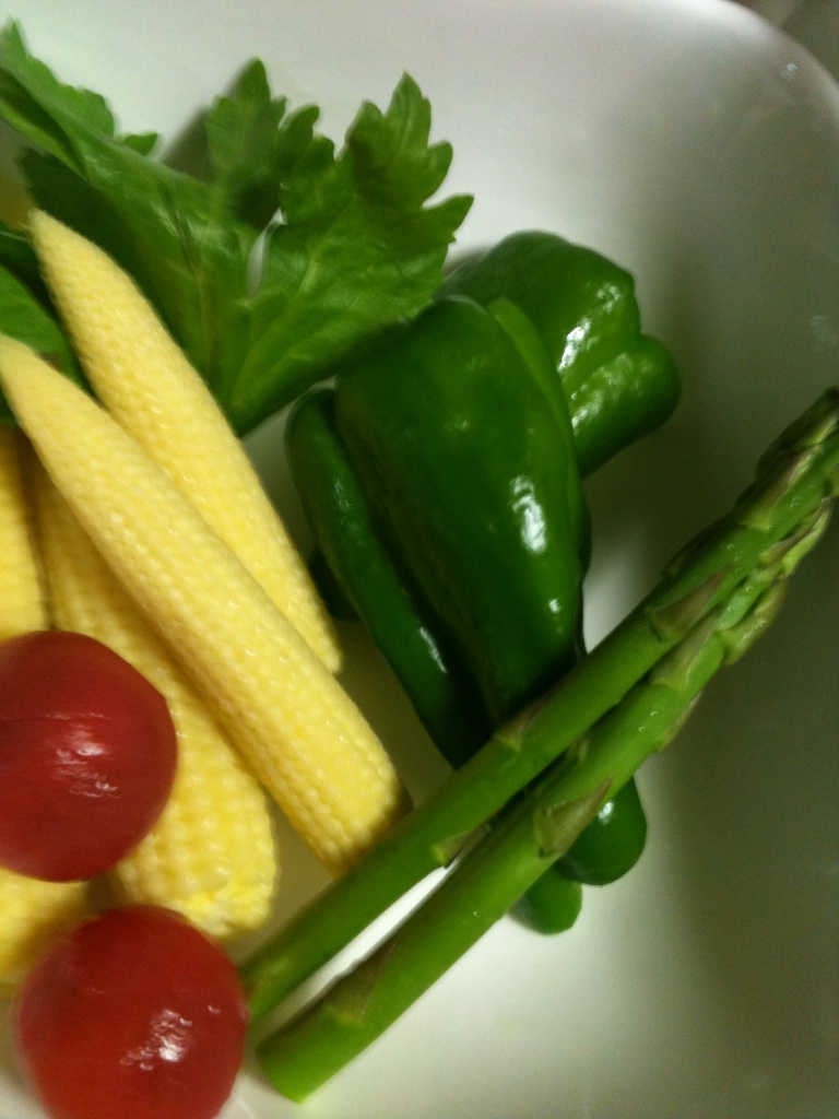 プチトマト、アスパラ、ベビーコーンにそして、お豆腐まで…