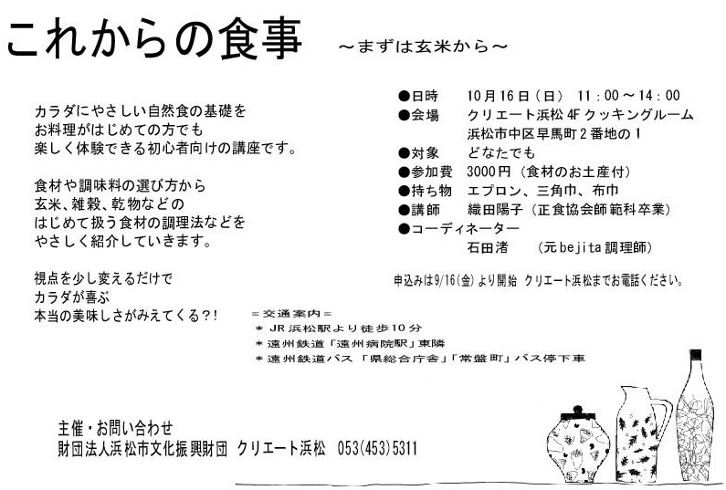 10/16(日) クリエイト浜松クッキングルームにて開催します!