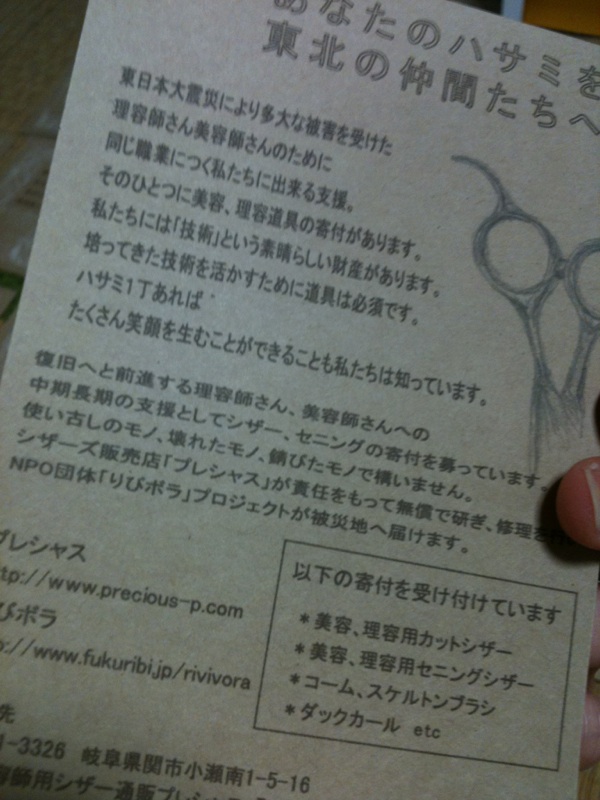 今夜はハサミの寄付の呼びかけのDMの印刷をしていました。