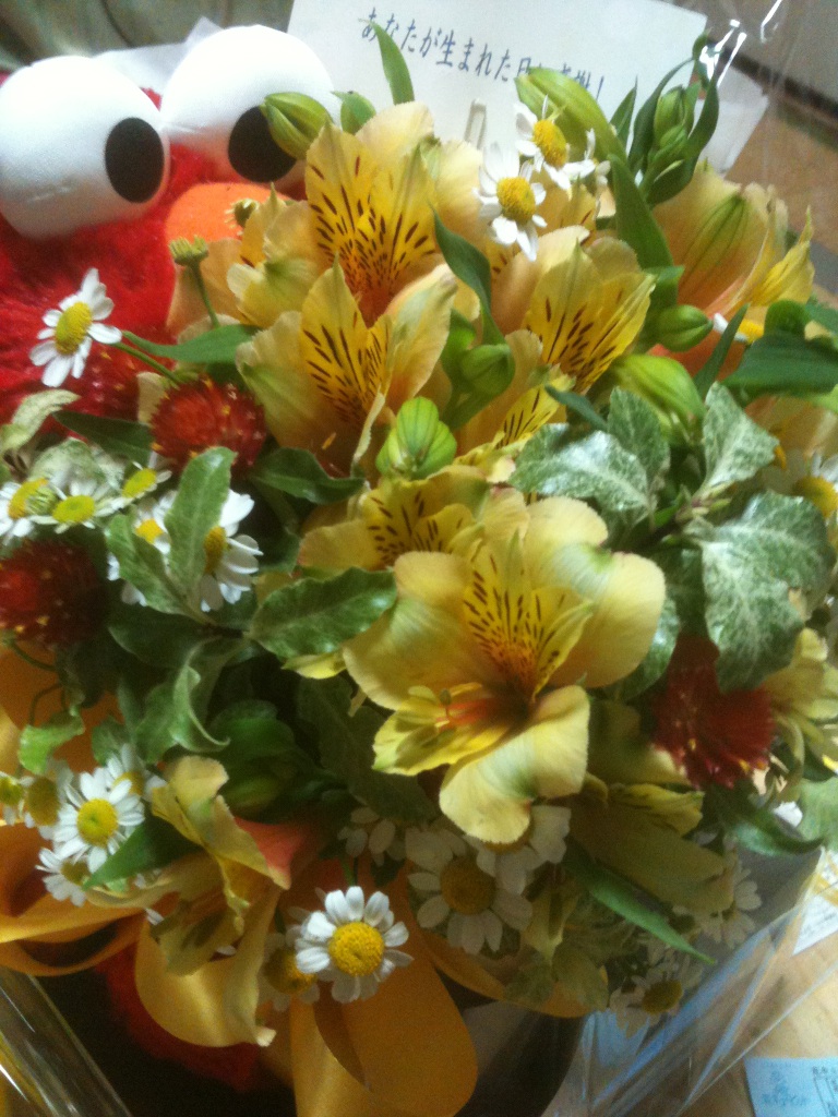 クッキーモンスターがお花を抱えて出迎えてくれていた。
