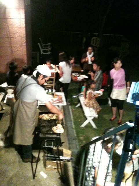 夜には本場大阪人による(^ ^)お店顔負けのフワッフワのお好み焼きをテラスでご馳走になりました。